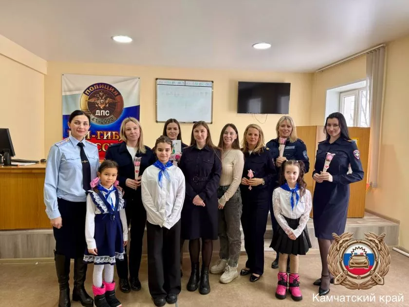 В преддверии Международного женского дня в отделе Госавтоинспекции Петропавловска-Камчатского прошла необычная встреча. Активисты отряда юных инспекторов движения из школы №30 пришли поздравить женщин-полицейских с наступающим праздником. Об этом написали в пресс-службе краевой Госавтоинспекции.