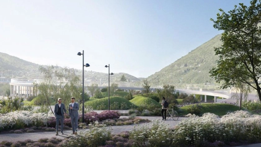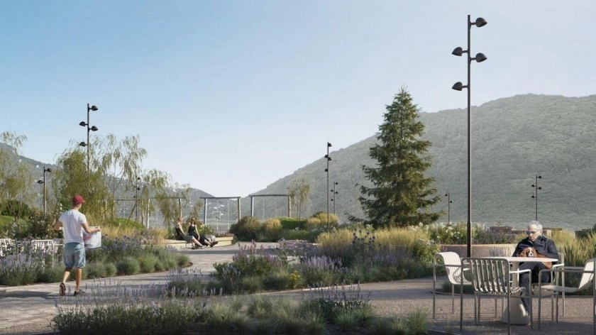Пространство объединит несколько зон. Здесь построят павильон со смотровой площадкой, событийный амфитеатр для проведения мероприятий, зеленые зоны для отдыха и крытые беседки. Обустроят современные детские площадки, прогулочный мост. Появится и необходимая инфраструктура: комната матери и ребенка, точки общественного питания.